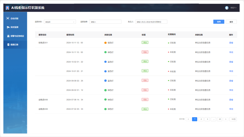 后台系统通过深度学习算法分析摄像头传输的图像,准确识别指示灯类型并判断亮灭状态。