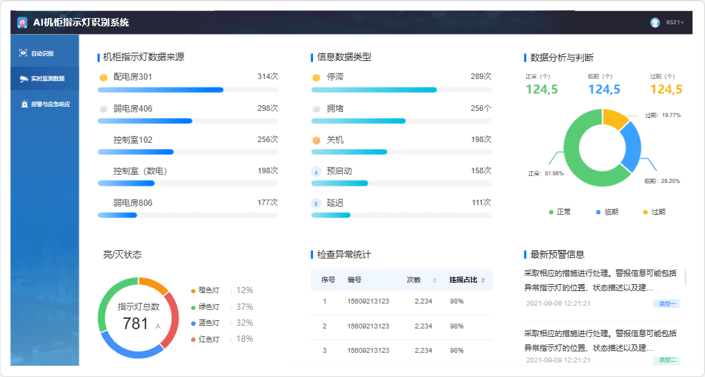 通过实时监测指示灯的状态,一旦检测到异常状态(如指示灯不亮或常亮等),系统会立即发出预警信号,提醒运维人员及时处理。